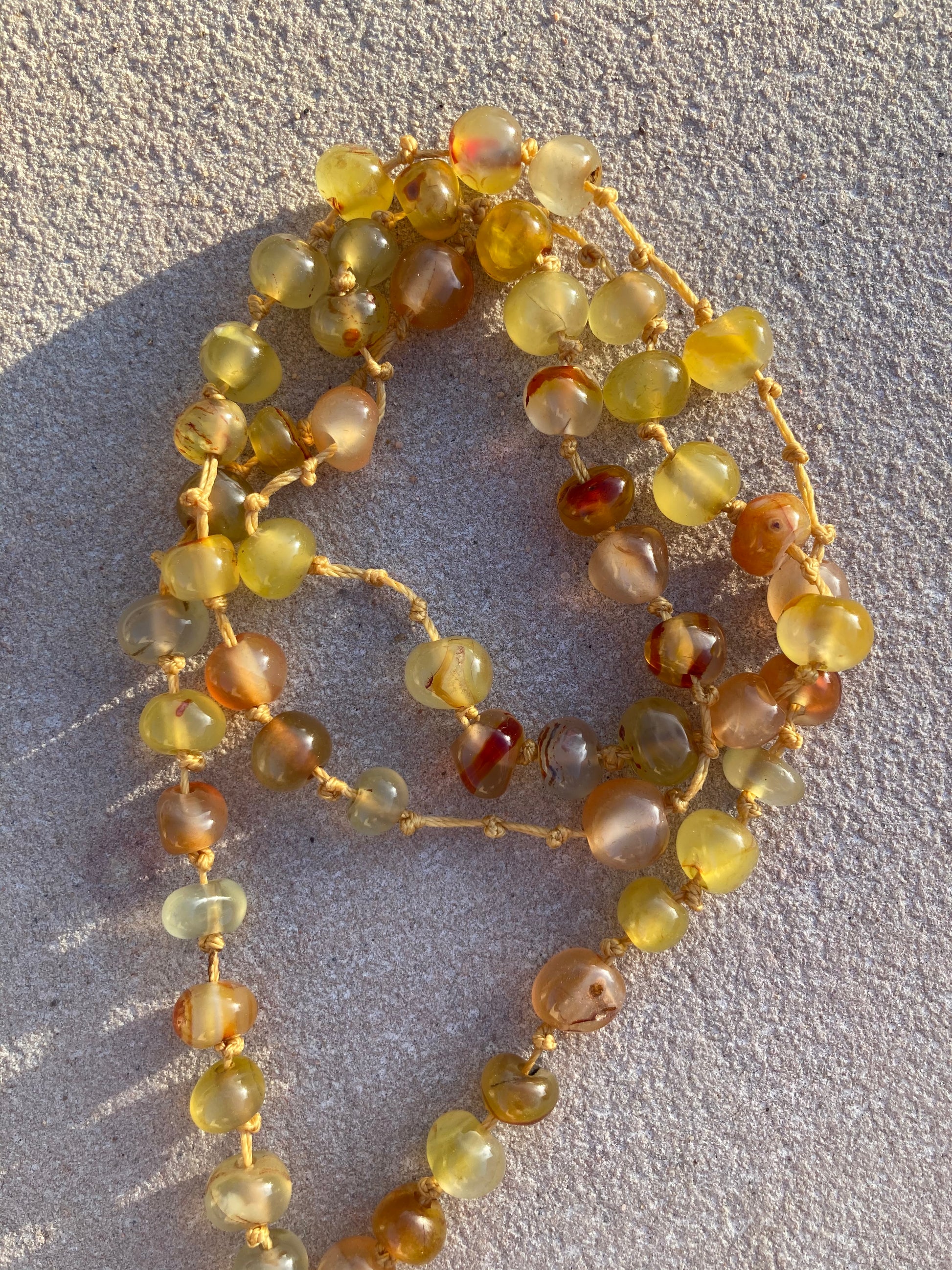 Over time, the metal components may tarnish or fade. To keep them shining, please store your piece in a jewelry pouch or soft cloth, and avoid direct contact with water (shower, bath, hot tub, sweating) as well as beauty products such as perfume.