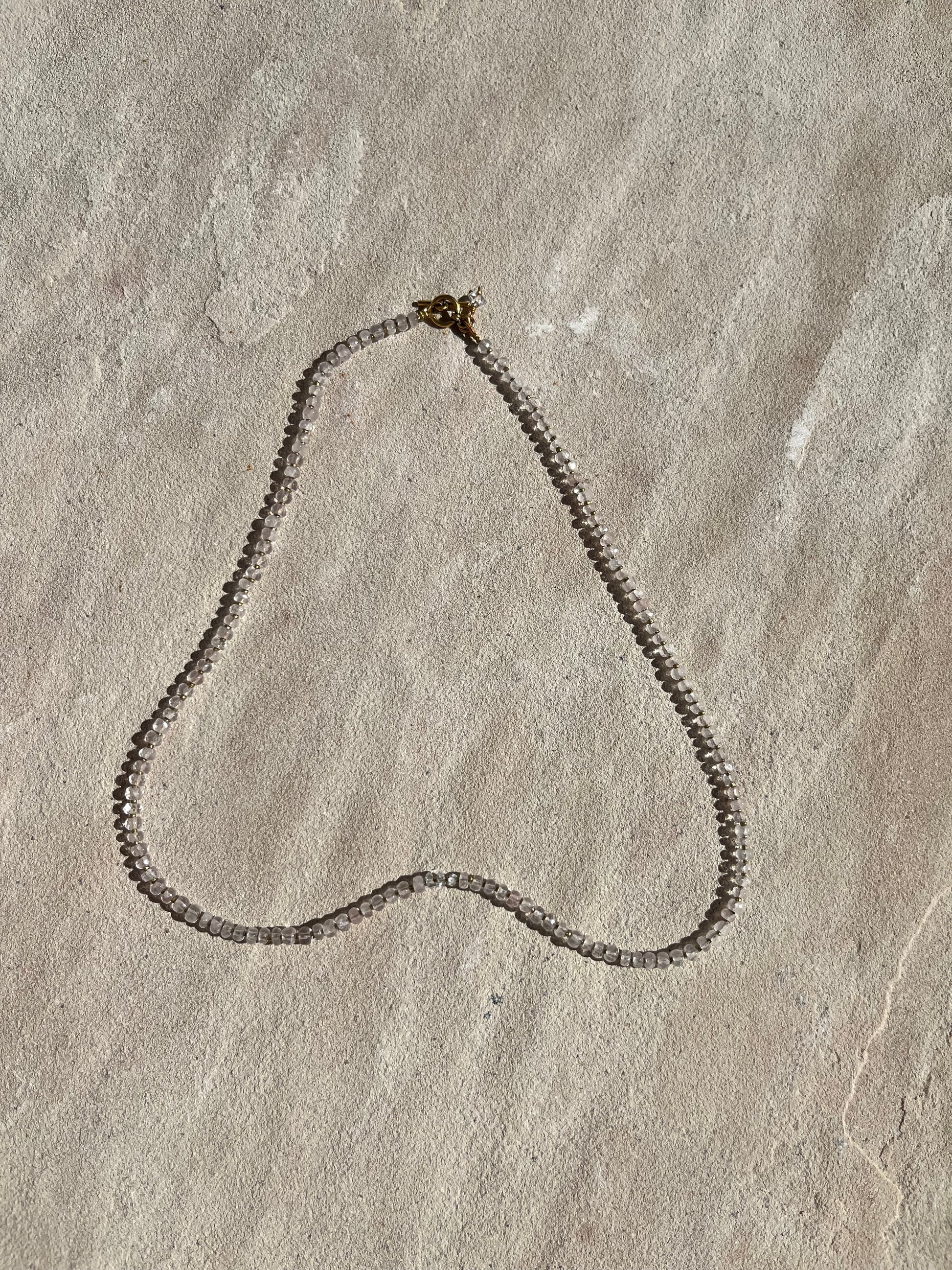 Over time, the metal components may tarnish or fade. To keep them shining, please store your piece in a jewelry pouch or soft cloth, and avoid direct contact with water (shower, bath, hot tub, sweating) as well as beauty products such as perfume.