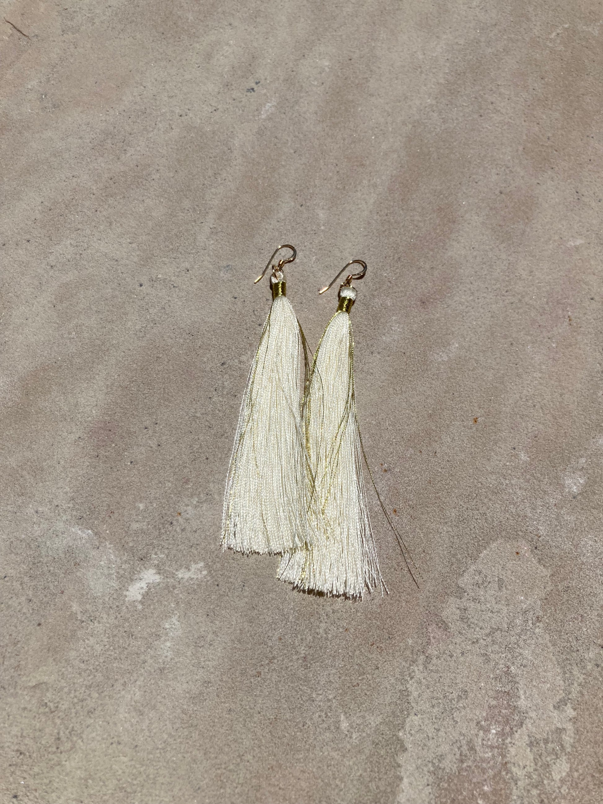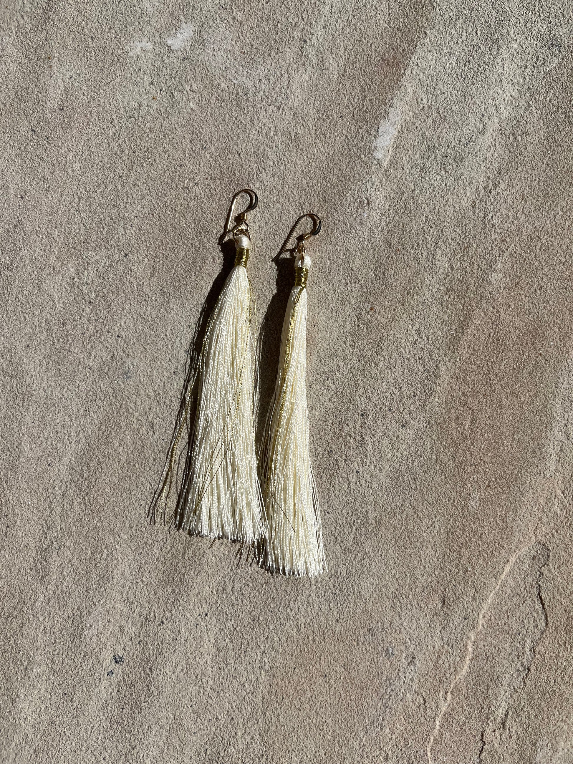 Luscious 9 cm real silk tassels in color Dolly, on gold filled earwires. Tassels have been used in jewelry since ancient Egypt - get some!